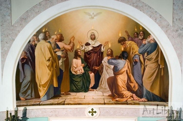 С наступлением праздничной ночи апостолы читали и молились в горнице главного дома их собраний. Жилище это принадлежало, по-видимому, иерусалимлянке Марии, матери Иоанна Марка. Тут были Петр и Иаков, Иоанн и Андрей, Филипп и Фома, Варфоломей и Матфей, Иаков Алфеев и Симон Зилот, и Иуда, брат Иаковлев.